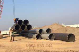 - Thân ống (Steel Pipe): Ống tròn (có đường kính từ DN500–DN2000+), thép cường độ cao được sản xuất bằng phương pháp hàn xoắn ốc (phương pháp tốt và phổ biến hiện nay) hoặc hàn đối đầu các đoạn ống hở với nhau tạo thành ống hoàn chỉnh