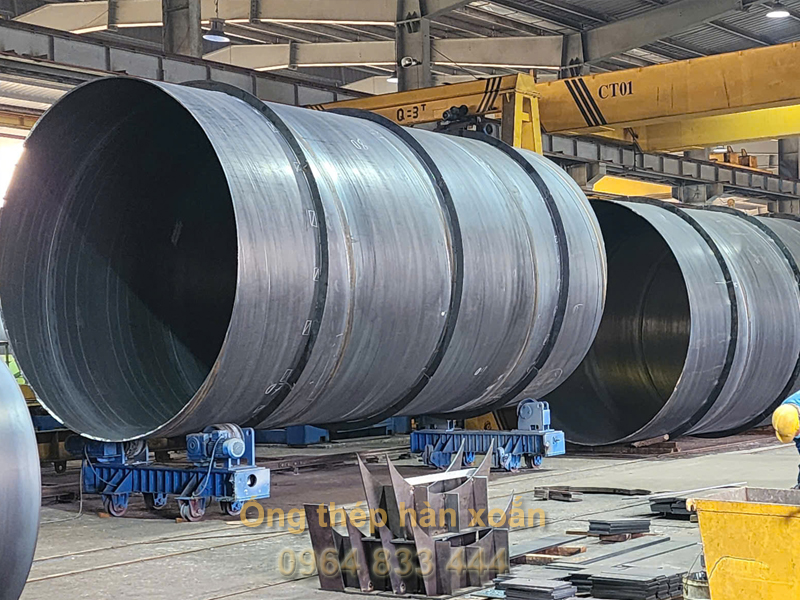 Hình ảnh gia công ống thép hàn xoắn đường kính DN3800 tại nhà máy