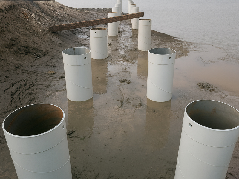Hình ảnh ống cọc thép được lắp đặt hoàn thiện tại dự án cảng tàu khách tại Quảng Ninh